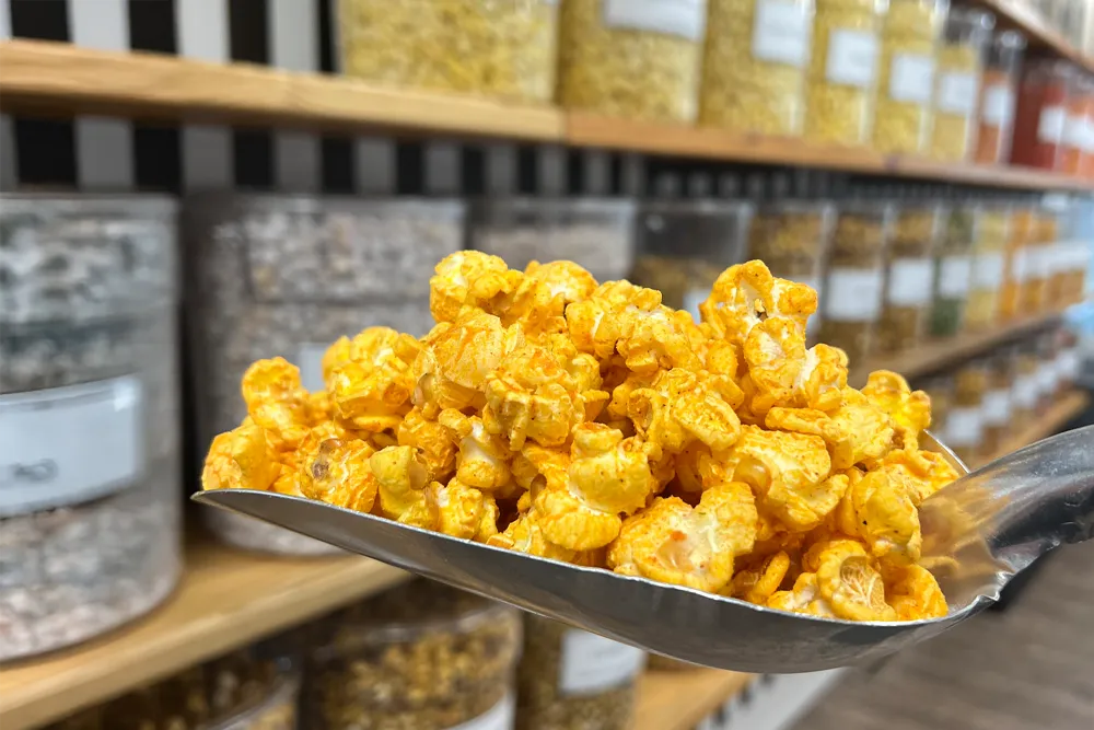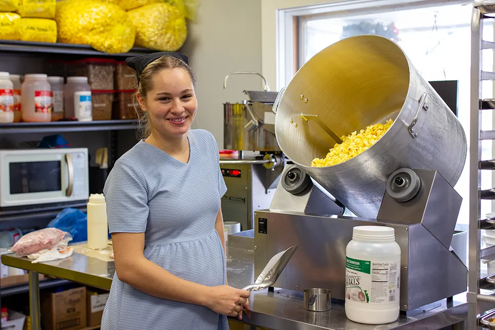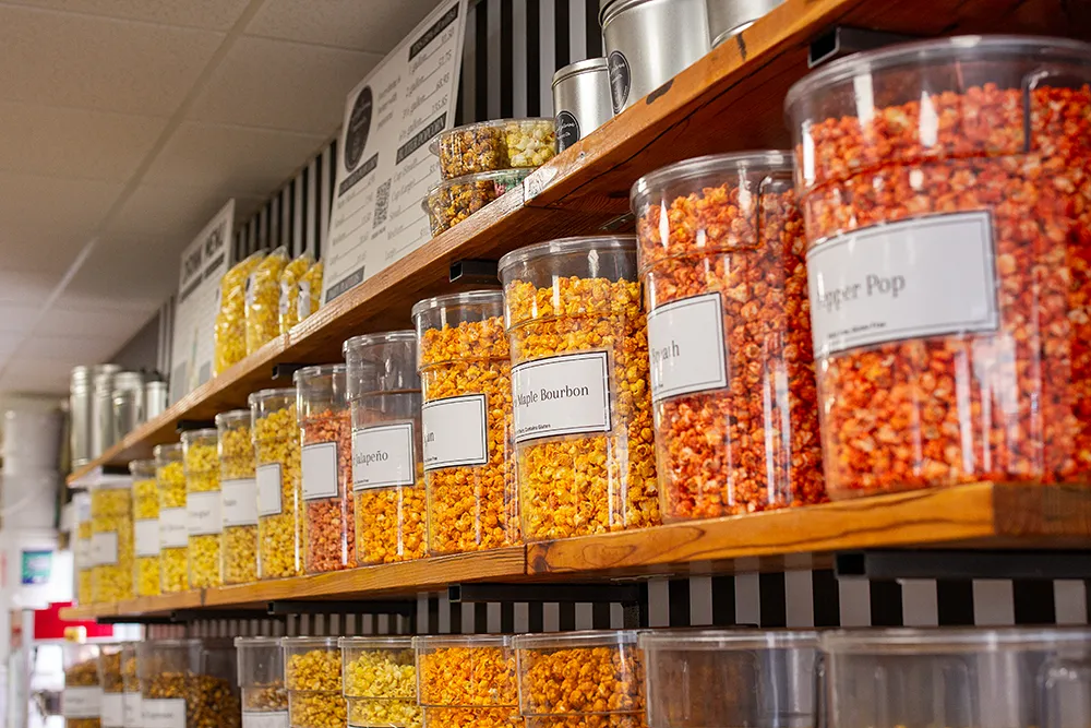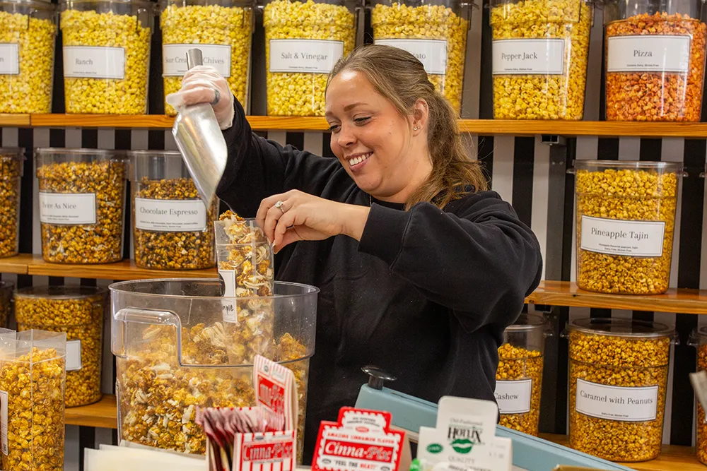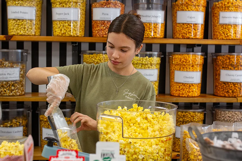 Shipshewana Popcorn Co. makes fresh batches in the shop each day, handcrafting each flavor with care. This hands-on approach keeps the popcorn tasting bright, warm, and full of real flavor.